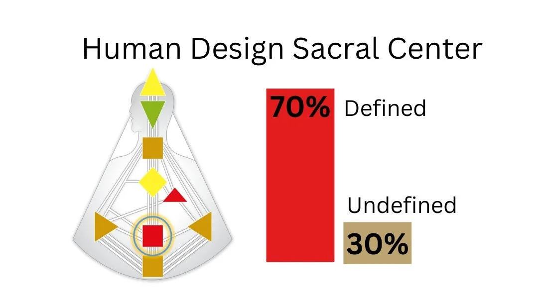 Located near the bottom of the bodygraph, the sacral center carries the energy of vitality, sexuality, fertility, and persistence. It is life force energy.